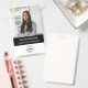 Simple y elegante placa de identificación corporativa que se puede personalizar fácilmente con la foto de identificación de su empleado, nombre, puesto, logotipo de la empresa, detalles de negocio y código QR o código de barras. El diseño es elegante e incluye una moderna tipografía minimalista. La imagen que se muestra es para fines de ilustracion y sólo se sustituye por la suya.