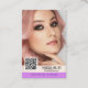Moderna red QR código tarjeta de negocios con 2 fotos para maquillador, peinado elegante, latigazos o extensiones de clavos para pequeñas empresas. Esta moderna tarjeta de presentación de codigo de moda es una buena manera de promocionar y relacionarse con tu cliente compartiendo más información sobre tu negocio usando el código QR, conectarte a tus medios sociales o añadir tu logotipo para fines de marca.
