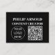 Esta tarjeta de visita presenta un diseño elegante y moderno con un fondo negro y un texto blanco nítido, encarnando sofisticación y profesionalidad. El logo ocupa el centro del escenario en la parte superior, y sirve como un punto focal sorprendente para tu identidad de marca. Debajo, los detalles de contacto están cuidadosamente arreglados, incluyendo la dirección de negocios, el número de teléfono, el sitio web y las cuentas de redes sociales, haciendo que sea fácil para los clientes llegar a usted. Un código QR se coloca sutilmente en la esquina inferior, ofreciendo una manera rápida y conveniente de acceder a su sitio web, portafolio o página de inicio de personalizados. La tipografía utiliza un tipo de letra sans-serif limpio y moderno, lo que garantiza una legibilidad óptima frente al fondo oscuro. El diseño minimalista, con amplio espacio negativo, realza el atractivo pulido y profesional de la tarjeta. Las refinaciones opcionales, como el brillo spot en el logotipo, un acabado mate o las esquinas redondeadas, pueden elevar el aspecto general para que el ambiente sea realmente de primera.