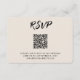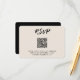 Tarjeta de gabinete RSVP casera personalizada con su información y un código QR. Cambie el vínculo de código QR fácilmente en el campo de personalización sin tener que crear y cargar uno nuevo por separado. Introduzca la herramienta de diseño de Zazzle para una mayor personalización. Asegúrese de comparar los diferentes tipos de papel para seleccionar su textura favorita.