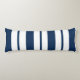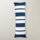 Esta almohada corporal se muestra en un diseño de estampado de rayas audaces en azul marino y blanco.