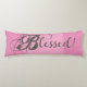 "¡Bendito!" Un diseño atrevido, vibrante y divertido que anuncia tu estado de bienestar y reconoce que es fuente. Esta bella almohada corporal de 20" x 54" incluye una almohada hipoalergénica de fibra de poliéster. Disfrute de una suave superficie exterior sin arrugas y resistente a la desvanecimiento y al encogimiento. Personalizable y hecho en Estados Unidos. Disponible en: Gris | Azul | Rosa | Tan o rojo