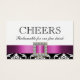 Tarjetas de boda Cash Bar para cupones de bebidas con cinta de satén rosada impresa con joyas de diamante impresas en damasco blanco y negro. Diseño de diseño de Elke Clarke©. Gráficos con licencia. Una buena idea para regalar a los clientes un billete de bebida en la recepción de bodas si hay un cajero automático. Entrega estas bellas tarjetas en la recepción de la boda o incluye en tu paquete de invitación a la boda.
