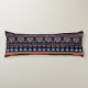 Una almohada de cuerpo de moda, con un borde de Corazones y Flores de estilo de arte folclórico sobre un fondo negro. Parte de la colección "Folk Heart" de Posh & Painterly.