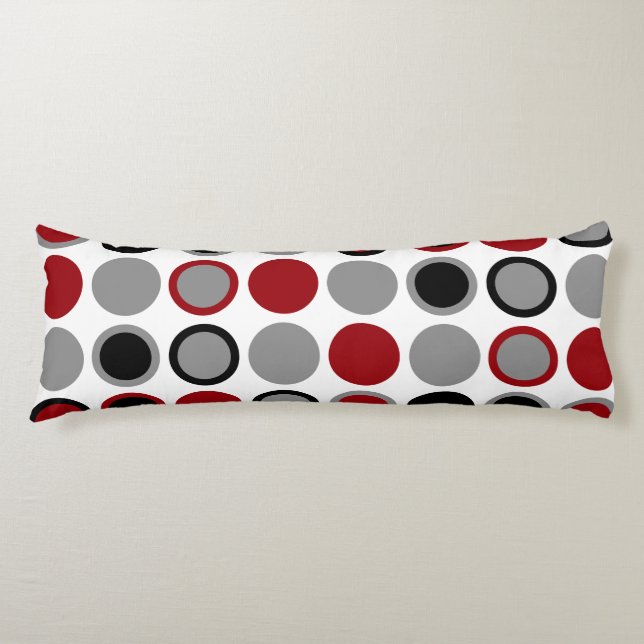 Cojín Círculos rojos, negros y grises