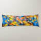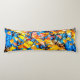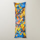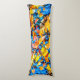 Hojas coloridas de otoño de color naranja y amarillo contra el fondo azul y gris. Escena floral positiva y hermosa de otoño. almohada corporal para cualquiera.