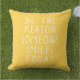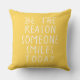 Eleva tu espacio al aire libre con esta almohada exterior grande amarilla inspiradora. El simple fondo amarillo prepara el escenario para un mensaje edificante: 'Sé la razón por la que alguien sonríe hoy'. Impreso en una tipografía casual manuscrita, esta cita inspiradora trae positividad y calidez a tu patio, porche o jardín. El gran tamaño de la almohada la convierte en una pieza de acento llamativa y proporciona un acolchado cómodo. Perfecta para el verano, esta almohada sirve como un recordatorio para difundir la alegría y tener un impacto positivo. Acepta el poder de la inspiración y crea una atmósfera acogedora con esta encantadora almohada exterior.
