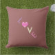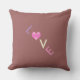 almohada de bonito cuadrada al aire libre con la palabra *amor* escrita con letras de colores. Frente Borgoña/espalda borgoña