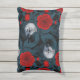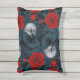 Cojín De Exterior Aves y flores de peón rojo con hojas azules