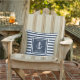 Cojín De Exterior Azul Marino Nombre Personalizado Franja Ancla Náut
