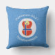 Un ángel de pelo rubio lleva la bandera de Noruega en una almohada exterior para las vacaciones y la decoración de Hanukkah. Diseño creado para familias con múltiples religiones. La bandera noruega Hanukkah angel está dentro del círculo de plazas blancas. El fondo son cuadrados azules y sarcásticos. Añade tu propio texto o personalizar con el año y personaliza con un nombre.