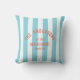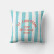 La almohada perfecta y personalizada para su casa de playa... Bandas azules de cabaña con el logo de la casa de playa de la familia personalizado roja retro. Personaliza con los detalles de tu casa de playa... nombre familiar, año establecido y ubicación. La adición perfecta a su sala de estar, jardín, piscina o para llevar un poco de confort a la playa. Accesorios de juego disponibles en Family Beach House Blue Cabana Stripe Collection.