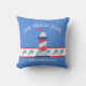 Nada dice "es verano" como una casa ligera con peces felices. Este diseño original presenta una casa de luz roja, blanca y azul sobre una banda roja y blanca. En el fondo de la casa iluminada hay seis peces sonrientes. El texto del personalizable dice: "NUESTRA CASA DE PLAYA" y "Establecida 20XX". En la parte trasera de la almohada hay un patrón compuesto por la casa luminosa. Este diseño está disponible tanto en el interior como en el exterior (se muestra aquí en una tela exterior).