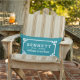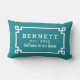 El diseño lumbar elegante de almohadas presenta un diseño de marco geométrico de borde blanco griego y un monograma que se pueden personalizar con un apellido casado o familiar, fecha establecida por el año (puede ser el año en que se casó o el año en que nació el primer hijo). Personalizar el verde azulado fondo azul verde para coordinarlo con tu decoración exterior.