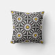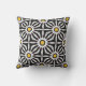 Modern outdoor pillow design featuring a seamless pattern composed of geometric shapes in black, white and yellow.