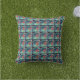 El patrón colorido y abstracto de ZoeSPEAK en este Cojín decorativo fue creado a partir de una fotografía original de una planta agave. La vista de la foto es desde arriba, mostrando los brotes de flores rosadas en su fondo de hojas en forma de disco verde azulado. La imagen está rodeada por un borde negro, para un patrón moderno y nítido.