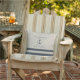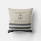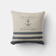 Crea un decorativo náutico personalizado y elegante en beige accesible y azul hale que presenta un patrón de rayas, ancla y texto de plantilla para el nombre de tu familia, lugar, año u otros dichos.