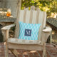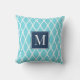 Cojín De Exterior Coastal Preppy Nautical Monogram Turquoise & Navy