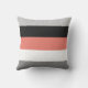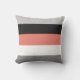 Un bloque de color moderno permite colocar almohadas de coral, gris oscuro y claro, negro y blanco.