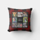 Holiday outdoor Pillow with modern black custom Family photo collage on red and black buffalo plaid pattern.