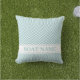 almohada exterior de patrón Aqua Herringbone. Decoración al aire libre costero con motivos geométricos en Aqua Blue y plantilla de nombre de barco para zonas de estar exteriores. Para la casa de playa o la decoración de la casa náutica, selecciona el material algodón o poliéster. Esta almohada personalizada es una hermosa idea de regalo para ella y para él, barqueros y marineros. La cubierta del patio decora las ideas hechas con amor al océano. © Design y.BEE SEA