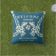 Bienvenidos a bordo de la almohada de tiro al aire libre, el contorno de la cuerda color beige en un fondo de color azul océano con texto beige. Puedes nombrar el texto para que se adapte a tu barco con la función "personalizar esta plantilla".