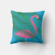 Esta diversión y amortiguador al aire libre tropical se adorna con un flamenco rosado fucsia y las hojas de palma en un fondo brillante del cielo azul, haciéndole el accesorio perfecto del verano para el área de la casa de playa, de la cabaña, del patio, de la cubierta o de piscina.