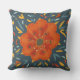 Almohada anaranjada colorida de la flor con un ilustracion caprichoso de una flor anaranjada brillante y de muchos elementos decorativos en colores brillantes del naranja, del amarillo, azules y azul marino. Esta almohada hermosa de la flor es alegre y feliz. Sus colores calientes traerán una sonrisa en su cara si usted ama diseños florales bonitos y ilustraciones caprichosos.