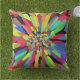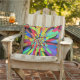 Una flor abstracta vibrante en tonos azules, violeta, rojo, coral, amarillo, dorado, verde y mucho más.