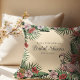 Esta elegante almohada amarilla con chorros de novia luce ilustraciones tropicales de color flamingo pintados a mano con tinta negra, flamencos rosas, hibiscos y flores jazmín, piña y hojas tropicales. Personalizar con nombre, evento y fecha. Azul turquesa sólido.