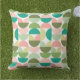 Un diseño geométrico moderno en tonos verdes y rosas. Inspirado por el diseño moderno de mediados de siglo, este patrón tiene formas y círculos audaces en el aspecto gráfico moderno.