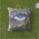 Colorida y afligida foto urbana moderna de graffiti en una pared de la ciudad, en Praga con un mal ojo azul y palabras y textos multicolores.