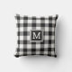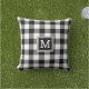 Una clásica almohada de casa de campo con estampado de búfalo de gingham en blanco y negro, para añadir su monograma inicial, para la perfecta decoración rústica de la casa.