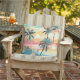 Suaves siluetas de palmeras y tonos de océano en capas forman un patrón soñador de puesta de sol tropical en tonos pastel calmantes. Ideal para un estilo costero relajado en ropa y decoración del hogar.