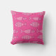 Almohada moderna, caprichosa, retra de los mediados de siglo de los pescados del modelo de la impresión, en sombras del pastel al rosa medio y al fucsia, en un fondo rosado fucsia medio