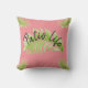 El bonito, diseño tropical es perfecto para su decoración casera al aire libre. Características del diseño un modelo de helechos verdes. En el centro de la almohada el frente es una hoja más grande del helecho. ¡A través de la curva del helecho el tronco es texto en la fuente negra de la diversión que dice vida del patio! ¡El fondo de la almohada es un color del rosa del flamenco para un tacto tropical verdadero!