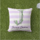 Cojín De Exterior Monograma de tiras blancas violetas de la luz de l