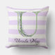 Cojín De Exterior Monograma de tiras blancas violetas de la luz de l