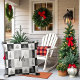 Cojín De Exterior Monograma rústico moderno de pinos negros y blanco