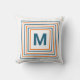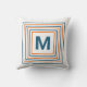 Alegre Resumen Monograma fuera lanzar almohada en blanco, naranja y azul. Personalizar este diseño edificante añadiendo tu inicial para una divertida ráfaga de color para tu tumbona en el patio.