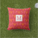Una almohada exterior de diseño con un estilo Ikat floral rosa y naranja. Elige que la cara inicial monocroma se muestre o voltee para que se muestre el lado plano. Su elección - tan versátil!! Perfecto para un porche, patio, zona de piscina, casa de playa o jardín. Utilice el menú desplegable si desea cambiar a material interior.