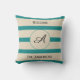 Una almohada de decoración beige y verde azulada a rayas, introduzca su familia inicial y nombre en la parte delantera y trasera utilizando el campo personalizado de esta plantilla a la derecha. Otros estilos disponibles.