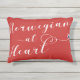 Pillow, acento noruego americano. Estos cojines están disponibles en algodón o poliéster para uso interior y también en una versión para uso externo! Tanto si eres noruego como si vives en Noruega, tienes familia o amigos noruegos, o si simplemente te encanta todo lo que tiene que ver con Noruega! Este elegante diseño de guiones presenta un pequeño corazón con la bandera noruega.