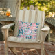 palmas tropicales de color azul verde azulado sobre coral pálido, rayas amarillas y azules para bebés, listas para su nombre y monograma con letras de moda de cualquier color sobre la cubierta blanca transparente (se puede borrar o mover en la disposición). Crea por ti mismo o dámela como regalo. Elija tejidos al aire libre o interiores y entre 3 tamaños.