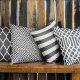 Cojín De Exterior Patrón de clave griega y blanca del carbón vegetal
