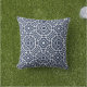 Añada un toque de audacia, estilo clásico marino y blanco a su decoración exterior este verano con nuestra almohada tipográfica con motivos de moda. El diseño presenta un moderno patrón de quatrefoil en azul marino y blanco. El patrón se repite al revés.