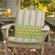 Decore su casa o patio con esta almohada lumbar de tiro que presenta una imagen de las flores dahlia amarillas en un fondo verde lima y que se imprime en forma repetitiva. ¡Un diseño floral y divertido! Seleccione el tipo de tela de almohada.