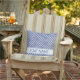 almohada exterior azul y blanca. almohada de patrón de círculo geométrico pequeño Ocean Blue y White con plantilla Nombre de barco. Combinación del patrón tradicional japonés de Shippo con el moderno tipo de letra minimalista de Nombre de Barco. Colocación del nombre del barco en ambos lados. Fácil de personalizar y potente idea de porche y cubierta para zonas marítimas exteriores. Patio cubierta de decoración de ideas hechas con amor al océano © Diseño y.BEE SEA