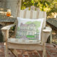 Almohada al aire libre de granjas con color verde en la parte posterior; Mano dibujada en tinta y acuarela