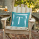 Cojín De Exterior Personalizado Verde azulado Blue Square Monograma